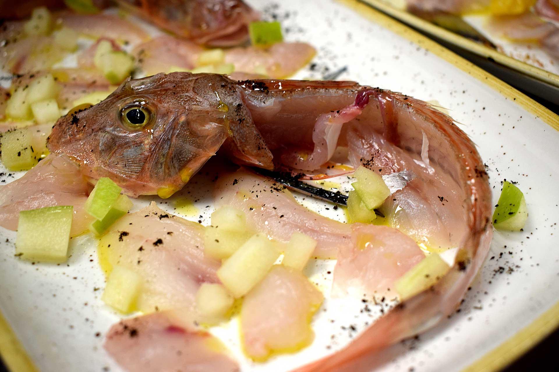 Lo Chef Luca Verrigni sceglie e acquista personalmente sia il pesce che le materie prime.
